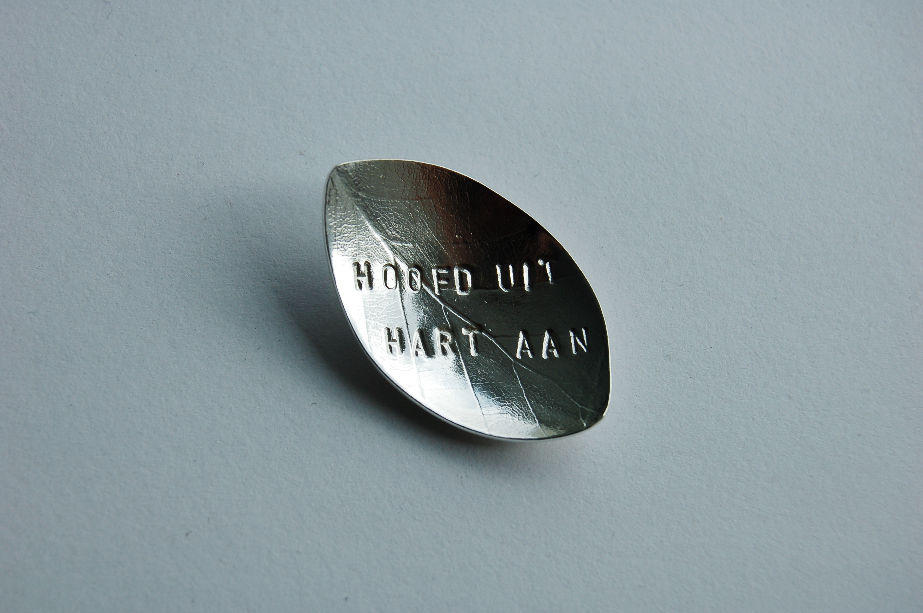 hanger van papier, zilver en epoxy | uitsnede uit dichtbundel | 20,5 x 30 mm | 95 euro