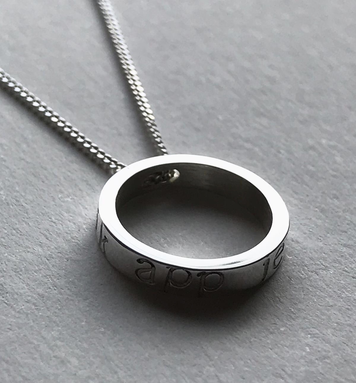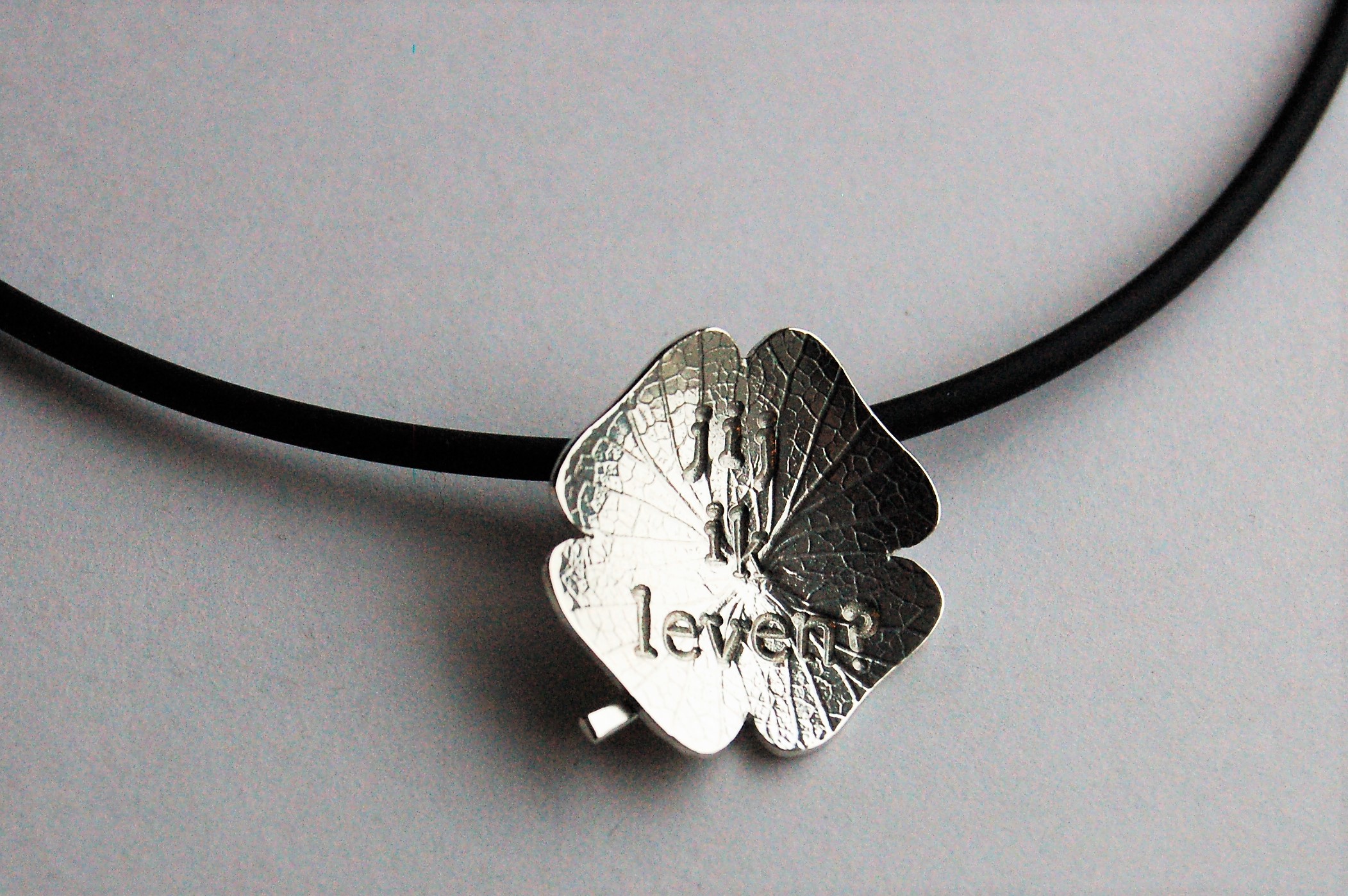 leef je in leef je uit | hoogte 18 mm | zilveren hanger 70 euro | zilveren kettinkje 20 euro
