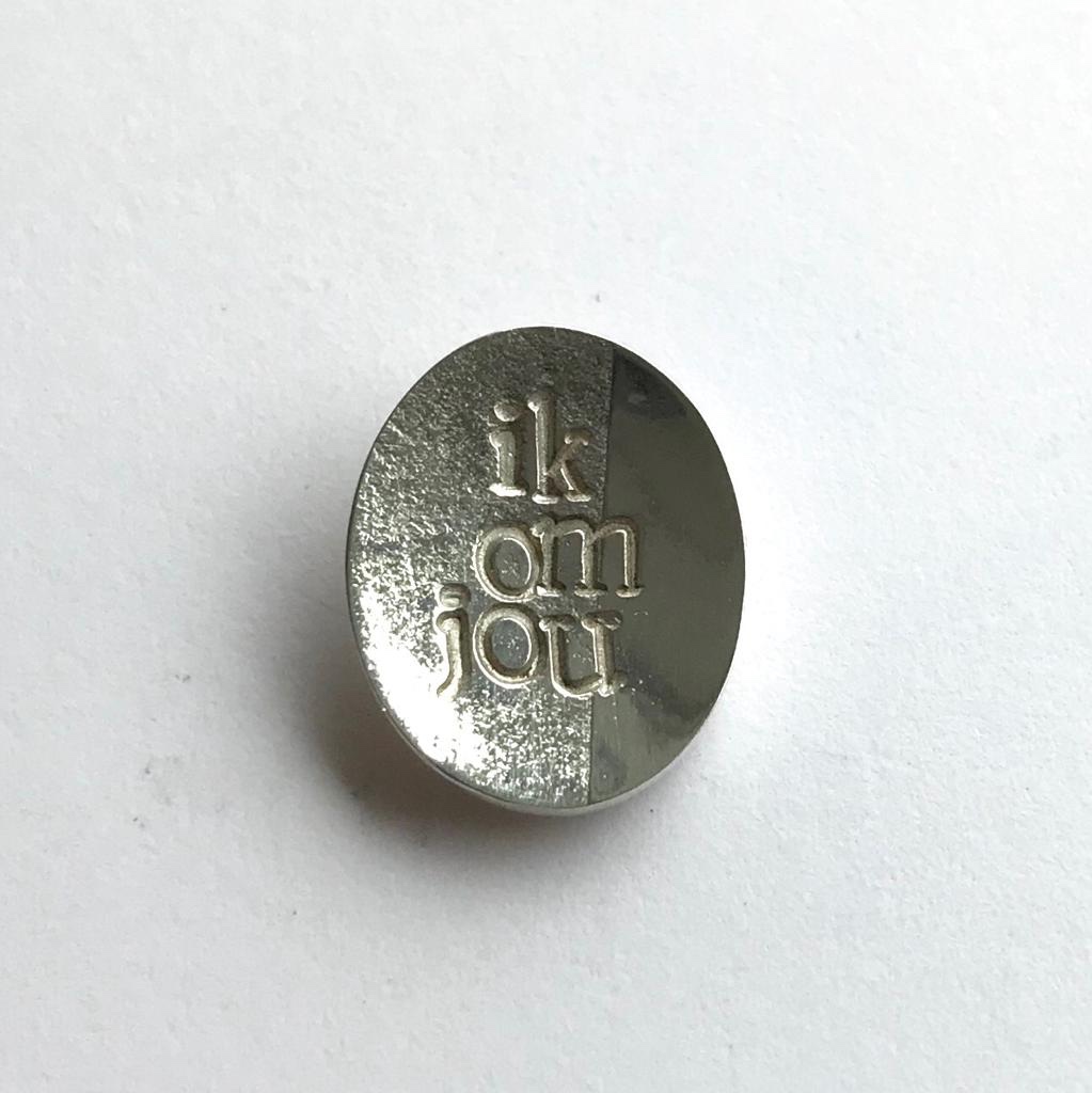 ik jou ook | restjes zilver – gesmolten, gewalst, geoxideerd | 16 mm | 55 euro | ketting 20 euro