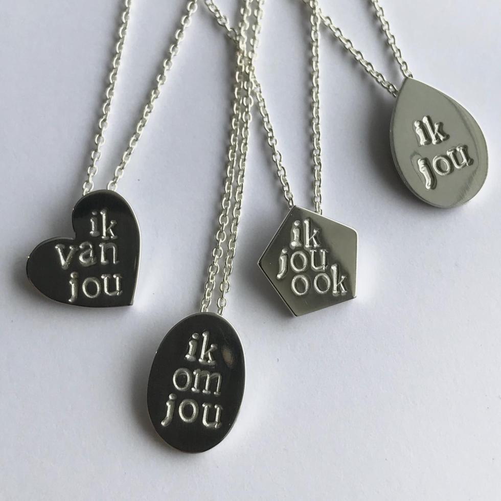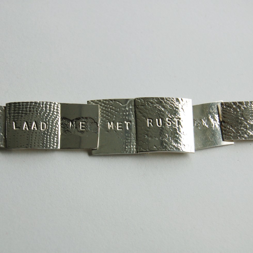 zilveren sieraden van Klaartje van Leeuwen met tekst van Merel Morre